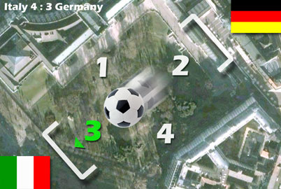 Auf einem virtuellen Spielfeld mit realem Ortsbezug muss ein virtueller Spielball
